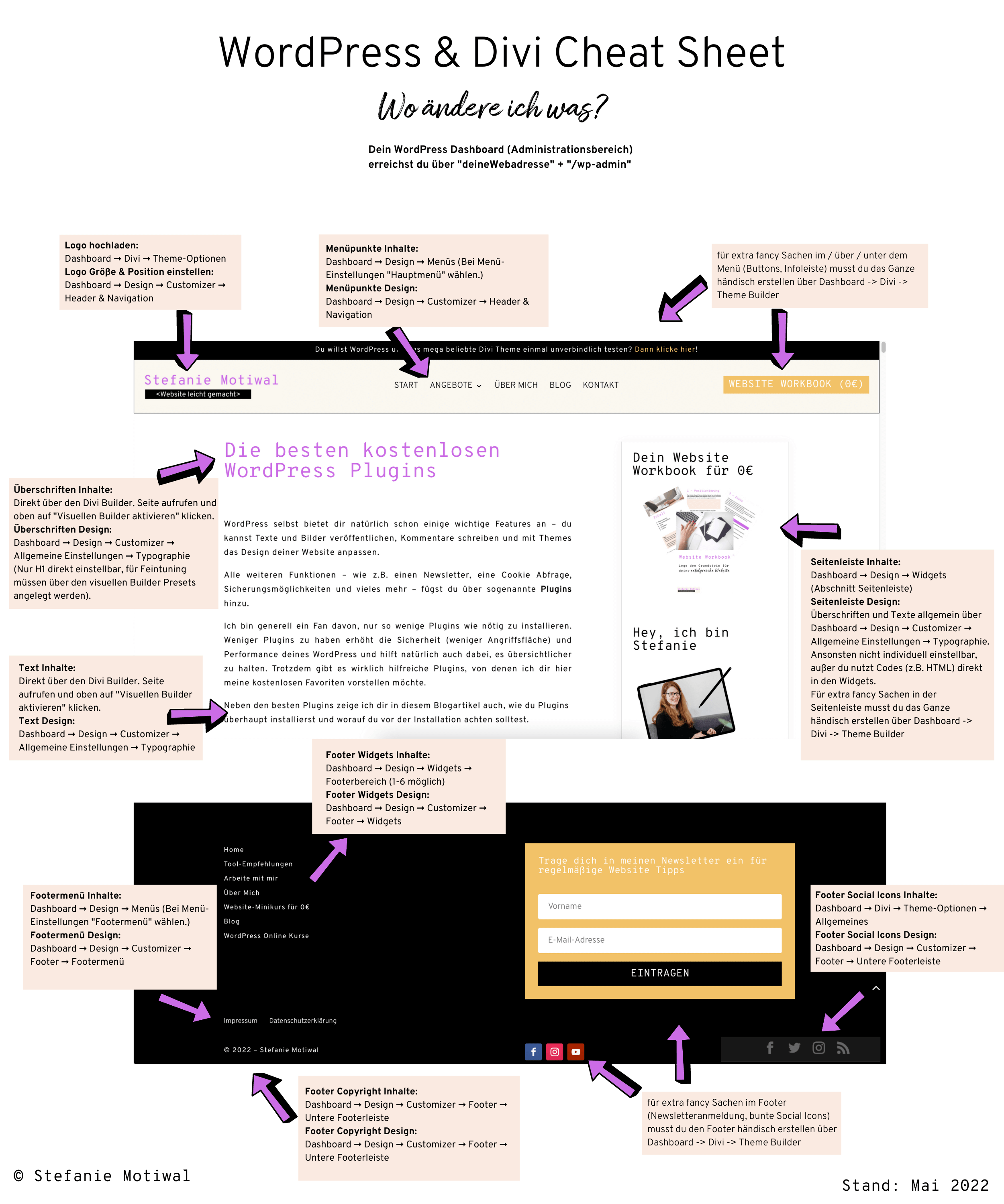 Du kannst dir außerdem das „Cheat Sheet“ als Grafik herunterladen und bei Bedarf immer nachschauen, wo du was ändern kannst.